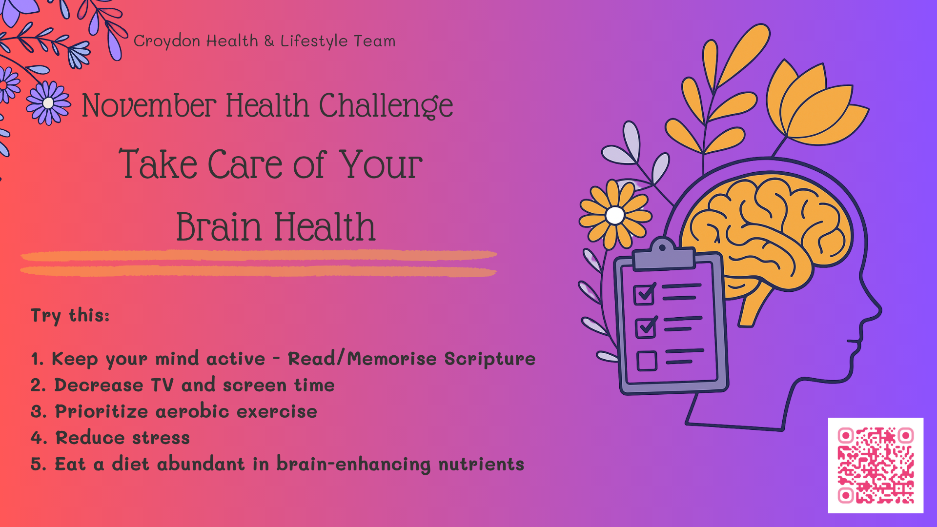 No matter where you are in your journey, you’re invited to discover your purpose and live it out at Croydon Seventh-day Adventist Church. Find practical lifestyle and Bible guidance, so you can connect with God daily and enjoy a joyful and healthy life.
