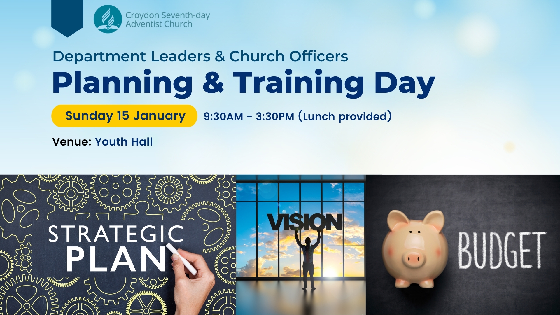 All Department leaders and church officers are invited to come with your plans for 2023 and join us for our Planning & Training Day. Lunch will be provided.