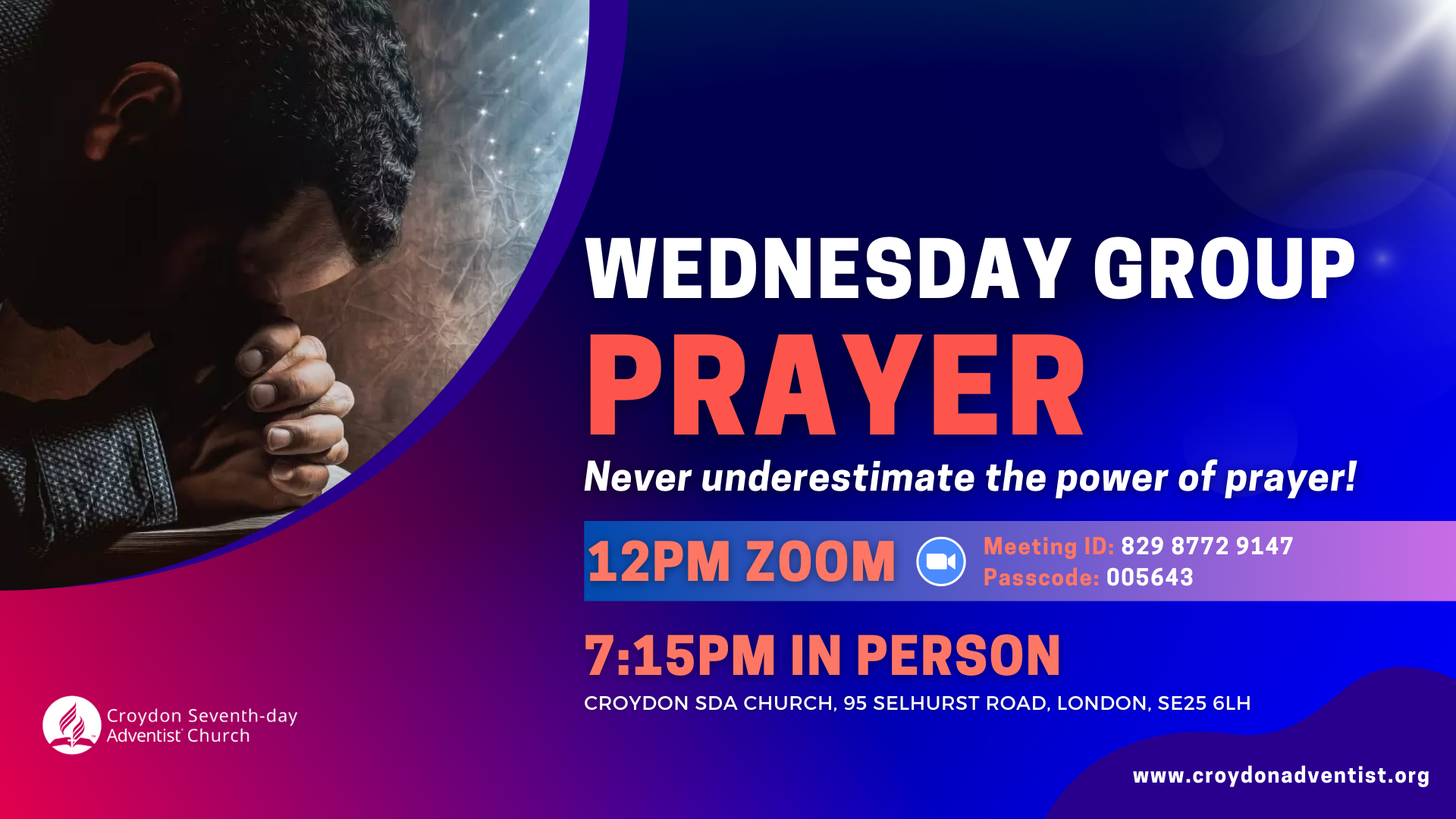 Evening – 19:15 – 20:45 in person at Croydon SDA Church, 95 Selhurst Road, London, SE25 6LH