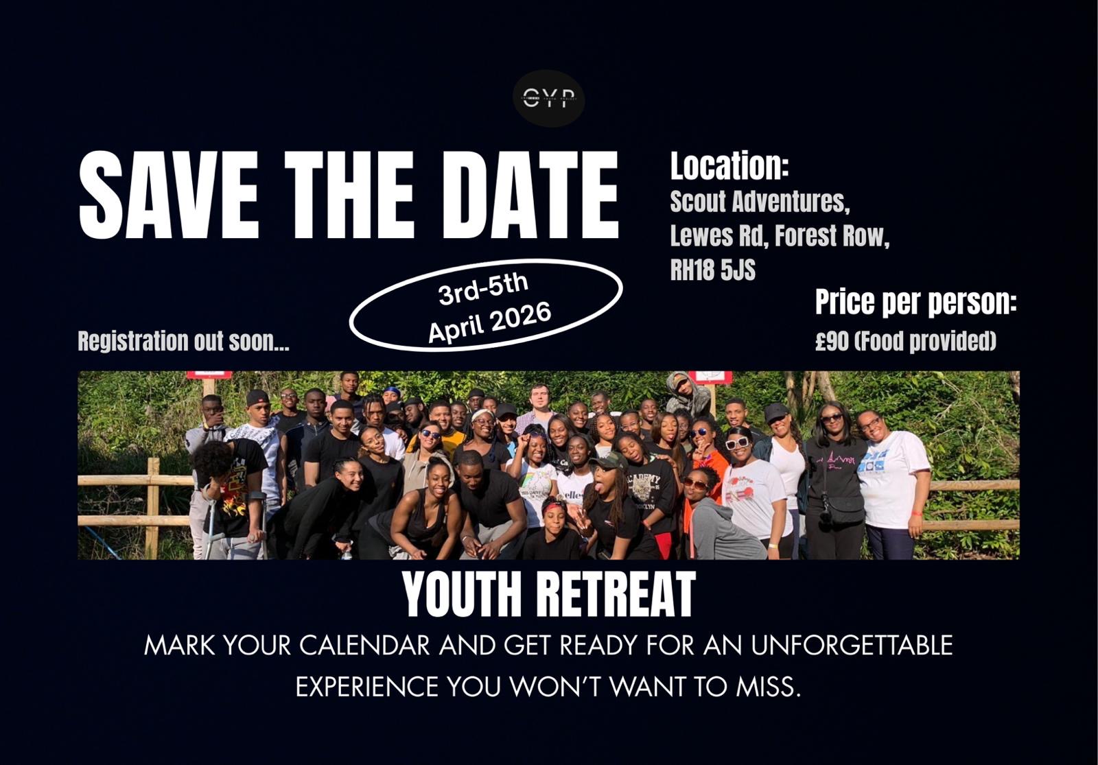 The Youth Team are excited to announce a Youth Retreat taking place from Friday, 3rd April to Sunday, 5th April 2026 at Scout Adventures Broadstone Warren in Forest Row.