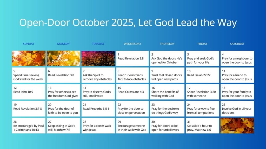You can download the calendar as an image file for sharing on social media, or as a PDF for printing. Please pass it on to others and help to spread the word everywhere and on social media: #Open-doorOctober.